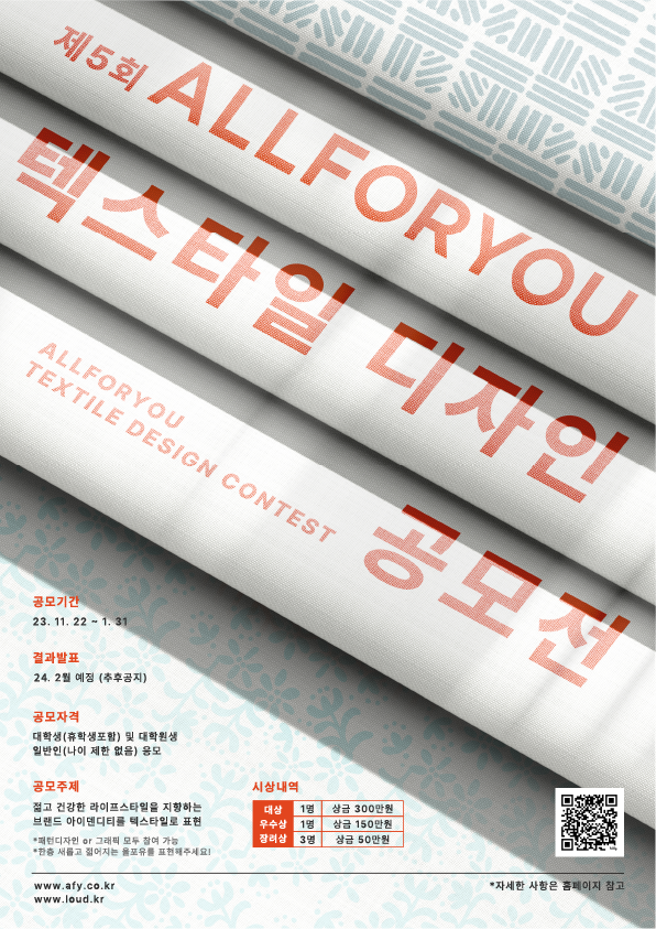 올포유의 텍스타일 디자인 공모전은 브랜드 이미지에 새로운 활력을 불어넣고자 기획됐다. 공모 자격은 일반인 및 대학생(휴학생 포함), 대학원생으로, 공모 기간은 11월 22일부터 1월 31일까지이다.