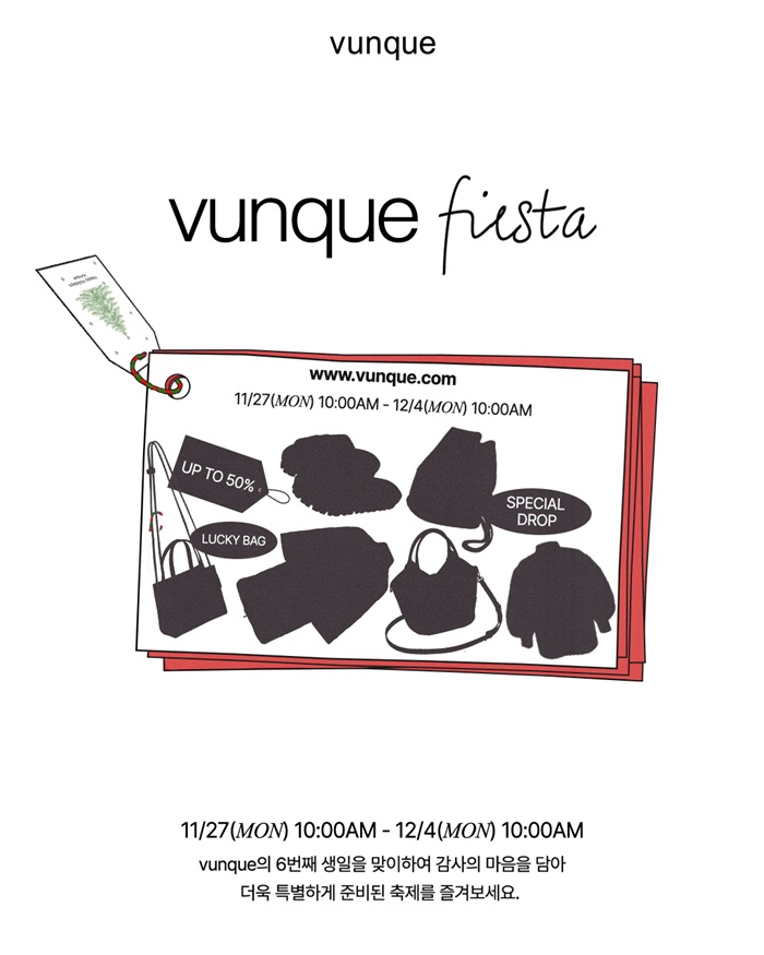 핸드백 브랜드 ‘분크’가 브랜드 론칭 6주년을 맞아 오는 11월 27일부터 12월 4일까지 특별 프로모션 ‘분크 피에스타(vunque fiesta)’를 진행한다.