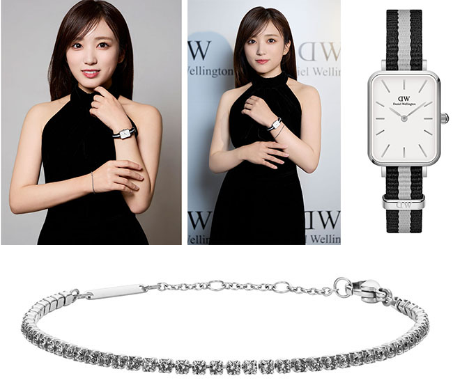 다니엘 웰링턴은 금번 야부키 나코와의 협업을 통해 새로운 액세서리 세트를 선보인다. 먼저, 다니엘 웰링턴 베스트셀러 아이템으로 꼽히는 콰드로 워치에 블랙과 그레이 컬러 배색의 나토 스트랩을 매치하여 기존 콰드로 워치와는 또 다른 매력의 스타일을 제안한다.