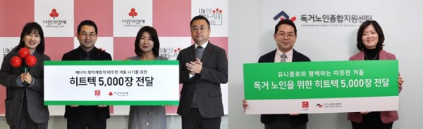 글로벌 패션 브랜드 유니클로(UNIQLO)가 겨울철 난방 취약 계층을 위한 히트텍 제품을 사랑의열매와 독거노인 종합지원센터에 각각 5천장씩 기부한다. 이는 혹한기 추위에 취약한 약 5천 명의 저소득층 가구 및 독거노인의 따뜻한 겨울나기를 지원하는 데 사용될 계획이다.