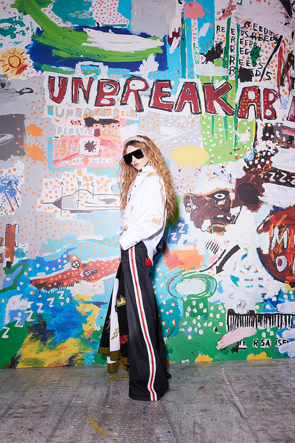 앨리스 앤 올리비아는 바스키아의 작품에서 얻은 영감을 기반으로 패션과 예술이 완벽히 결합된 화려한 디자인의 룩을 제안했다. 바스키아 작품의 상징인 ‘왕관(Crown)’ 모티브와 여러 대표작에서 볼 수 있는 텍스트 등 다양한 페인팅 요소를 패턴으로 적용한 재킷, 블라우스, 드레스, 크롭 후디, 카디건, 스커트 등이다. 레드/블루/그린/핑크/옐로우 등 과감한 컬러에 거침없는 화풍을 반영해 바스키아 작품 특유의 개성과 자유로움을 한껏 살렸다.