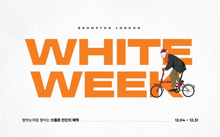 먼저 브롬톤 런던 전국 오프라인 매장에서 진행되는 ‘럭키 드로우’ 이벤트는 브롬톤 런던 자사몰 회원 가입자를 대상으로 한다. 브롬톤 런던 매장 방문 후 회원가입 시 ▲10% 할인 쿠폰 ▲화이트 위크 기념 스티커(2개) ▲럭키 드로우 참여 응모권 등을 지급한다. ‘럭키 드로우’ 참여 시 ▲브롬톤 전용 프론트백 ▲브롬톤 런던 겨울 한정 울 니트 장갑, 비니, 머플러 ▲최대 50% 할인 쿠폰 ▲양말 등을 증정한다. 회원 가입 시에만 참여 가능하며, 기존 회원도 참여할 수 있다.