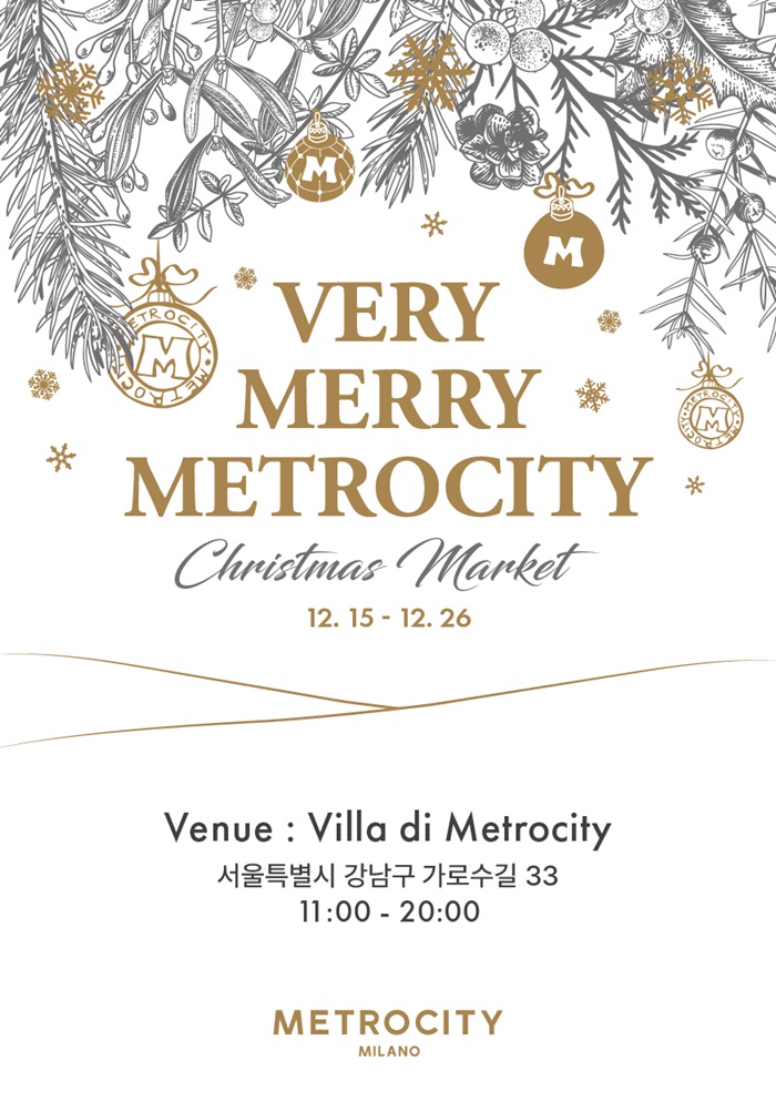 이탈리아 네오 클래식 브랜드 ‘메트로시티(METROCITY)’는 온라인과 오프라인에서 올해 마지막 프로모션 및 라이브를 진행하고, 크리스마스 마켓까지 연다.