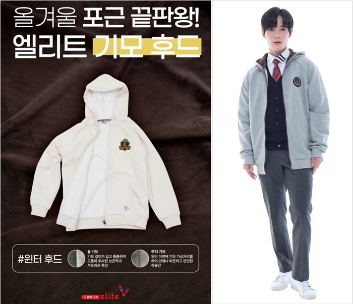 형지엘리트(부회장 최준호)가 편안한 착용감과 보온성에 캐주얼한 디자인까지 돋보이는 기모 후드 집업을 새롭게 선보인다.