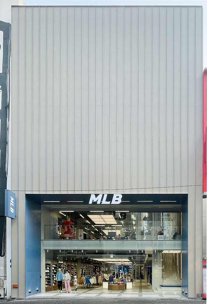 지상 1층과 2층, 약 200평 규모의 MLB 명동 플래그십 스토어는 야구 스타디움에서 모티브를 얻어 패션으로 승화해 디자인됐다. 유니폼의 스트라이프를 이용한 파사드, 스타디움의 관람석 라운드 구조를 이용한 신발 진열장, 야구 필드 모양의 바닥패턴, 스코어 전광판 격자 모양을 활용한 캐셔 메인 월 등 매장 곳곳에서 야구 경기장을 구성하는 요소들을 만나볼 수 있다.