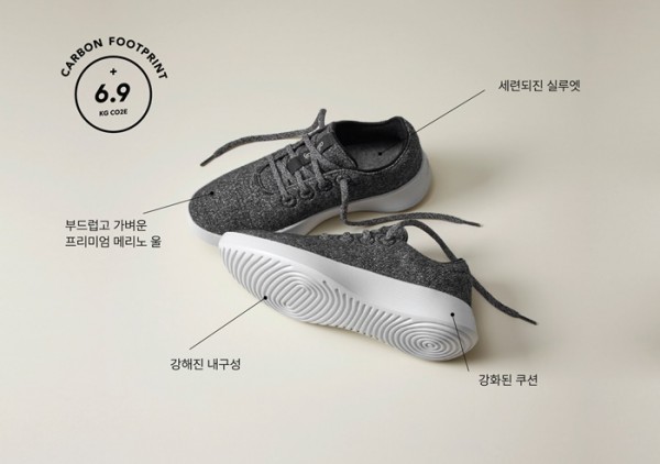 이번에 선보이는 울 러너 2는 다른 올버즈의 제품들과 마찬가지로 생산 과정에서 환경에 미치는 영향을 표시한 탄소발자국 라벨을 확인할 수 있다. 울 러너 2의 탄소발자국은 6.9 kg CO2e로, 이는 일반적인 신발보다 현저히 낮을 뿐 아니라 기존 울 러너(8.03 kg CO2e)보다 감소한 수치다.