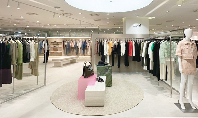 시선인터내셔널이 전개하는 영 컨템포러리 브랜드 ‘E.B.M(Edition By MICHAA)’이 지난 15일, 롯데백화점 잠실점 2층에 신규 매장을 오픈했다.