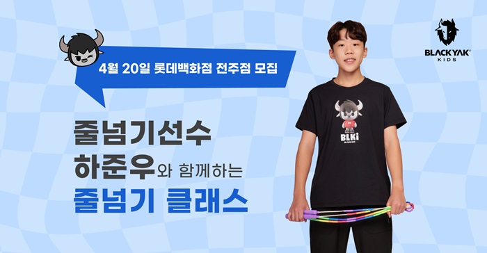 ‘블랙야크 키즈’가 이달 31일까지 ‘줄넘기 선수 하준우와 함께하는 줄넘기 클래스’에 참가할 신청자를 모집한다.