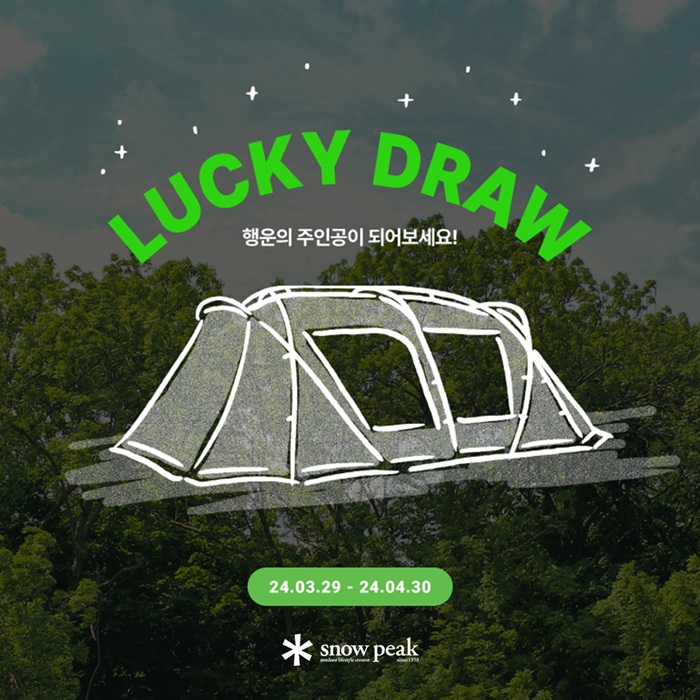 프리미엄 아웃도어 브랜드 ‘스노우피크 어패럴’이 3월 29일부터 4월 말까지 전국 오프라인 매장 및 공식 온라인 스토어에서 럭키 드로우 프로모션을 진행한다.