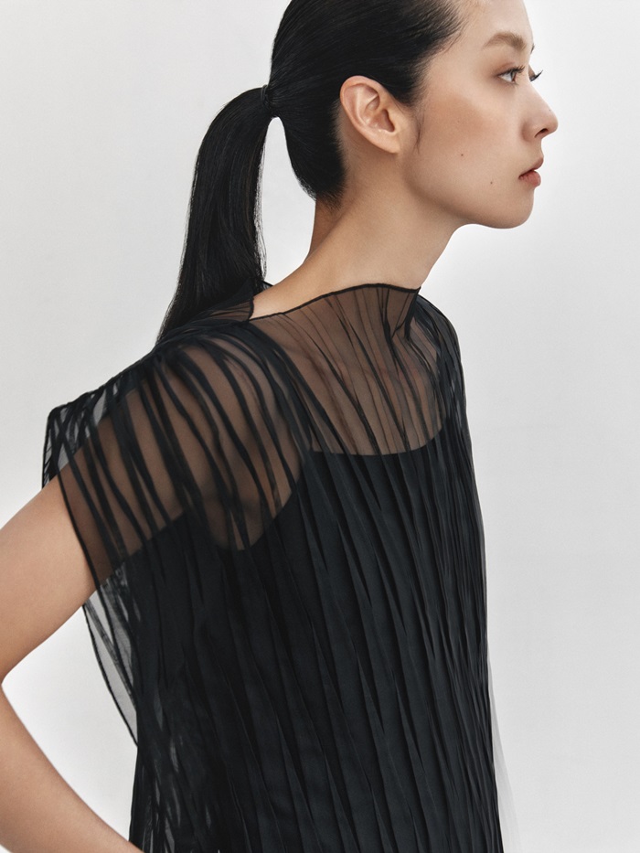 아름다운 결의 주름 디테일이 인상적인 팬츠와 스커트는 허리에 이밴드(E-Band)를 더해 편안하다. 셔츠는 기본 스타일에 주름 패턴을 가미돼 우아하고 여성스럽다.