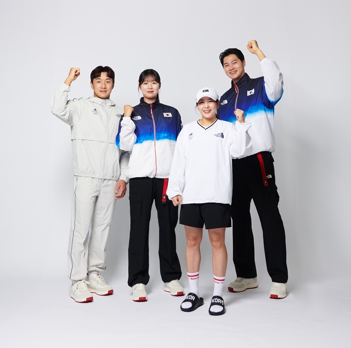 노스페이스는 시상대 위 영광의 순간에 대한민국 국가대표 선수들을 빛내줄 ‘시상용 단복’을 비롯해 편안하면서 뛰어난 기능성을 갖춘 ‘일상복(후드 재킷, 긴팔티, 반팔티, 폴로티, 반바지 등)’과 ‘선수단 장비(운동화, 슬라이드, 캡, 버킷햇, 양말, 백팩, 숄더백 및 여행 가방 등)’ 등 총 23개 품목으로 구성된 ‘팀코리아 공식 단복’을 지원한다. 이 날 단복 시연회에는 오상욱 선수(펜싱), 이준환 선수(유도), 임시현 선수(양궁) 및 김수지 선수(다이빙)가 모델로 직접 등장하여 공식 단복을 선보였다.