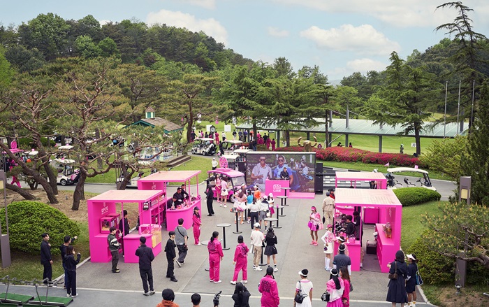‘지포어 인비테이셔널’ 행사 슬로건은 ‘애드 컬러 투 유어 게임(ADD COLOUR TO YOUR GAME)’이다. 지포어는 22년부터 매해 캠페인 시그니처 컬러를 정하여, 호텔, 갤러리 등 이색 공간에서 파격적인 캠페인을 진행해오고 있다. 올해는 브랜드의 상징인 ‘컬러’에 지포어만의 새로운 시각인 ‘위트’를 더하여 골프 대회에 차별화를 꾀했다. 골프장으로 들어서는 진입로부터 클럽 하우스, 스타트 광장, 코스, 만찬장은 올해 브랜드 캠페인 테마 컬러인 핑크로 강렬하게 브랜딩하여, 그린과 대비되는 강렬하고 감각적인 공간을 완성했다. 스타트 광장에 들어서면 펼쳐지는 리드미컬한 DJ 공연과 식음 부스들은 대회의 시작에 앞서 페스티브 무드를 전했으며, 골프 코스에는 핫도그과 샴페인 카트, 대형 트로피 형상의 조형물 등 이색 볼거리를 통해 위트를 더했다. 또한, 별도로 마련된 샴페인 라운지 역시 컨셉츄얼한 브랜딩으로 지포어만의 프리미엄 경험을 선사했다.