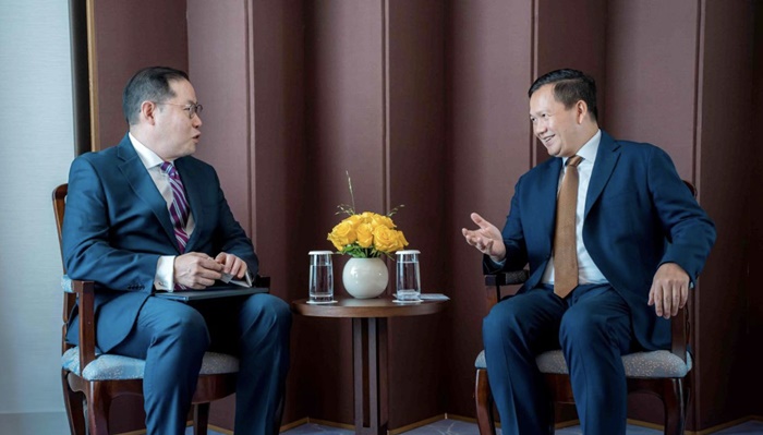 조현상 효성그룹 부회장이 17일 한국-캄보디아 정상회담을 위해 한국을 찾은 훈 마넷(Hun Manet) 캄보디아 총리를 서울에서 만나 향후 협력 확대 방안을 논의했다.