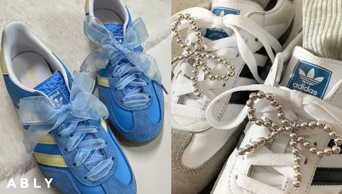 발레코어 트렌드에 새틴, 쉬폰 소재 운동화 끈 인기