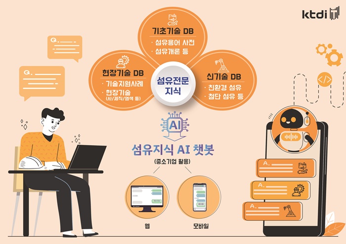 한국섬유개발연구원(원장 호요승, 이하 ktdi)이 섬유산업의 기초기술과 제조 현장 기술 그리고 신기술 동향 등에 대한 전문지식을 생성형 AI 챗봇으로 구축하는 사업에 착수했다.