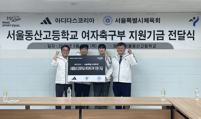 아디다스코리아(대표 피터곽)가 서울시와 함께하는 ‘서울아 운동하자’ 캠페인의 일환으로 서울동산고등학교 여자축구부에 지원 기금을 전달했다.