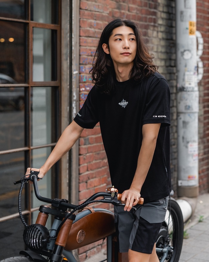 아이더의 마운틴 헤리티지와 클래식한 레이볼트 전기 자전거를 모티브로 한 그래픽 아트웍, 모던한 컬러감이 만나 감각적인 바이커 스타일을 완성했다. 아이더X레이볼트 협업 컬렉션은 초경량 우븐 자켓을 비롯 라운드 티셔츠, 폴로 티셔츠, 숏팬츠, 슬링백, 메쉬캡까지 다양한 제품 구성으로 출시됐다.
