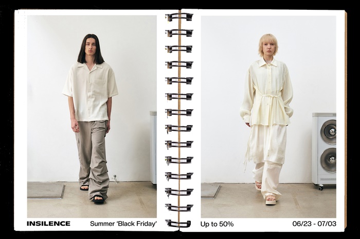 컨템포러리 브랜드 ‘인사일런스(INSILENCE)’가 6월 24일부터 7월 3일까지 연중 최대 세일 프로모션인 ’24 썸머 블랙 프라이데이’를 진행한다.