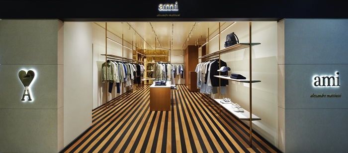 아미는 독특한 브랜드 경험을 제공하기 위해 기본에 충실하면서도 특유의 파리지앵 감성이 깃든 공간으로 매장을 꾸몄다. 천연 오크(oak, 참나무), 브라스(brass, 황동), 화이트 세라믹 등 다채로운 소재를 활용해 감각적이면서도 세련된 공간을 연출했다.