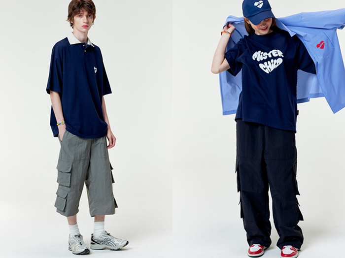 키치하고 위트 있는 디자인으로 MZ 세대들에게 많은 사랑을 받고 있는 디자이너 브랜드 ‘미스터차일드(MISTERCHILD)’가 24SS 컬렉션 중 시그니처 아이템 ‘나일론 카고 팬츠’를 활용한 시원한 여름 코디 룩을 추천한다.