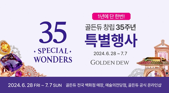 국내 대표 파인주얼리 브랜드 ‘골든듀’가 오는7월 7일까지 창립 35주년 특별행사 ‘35 Special Wonders’를 진행한다.