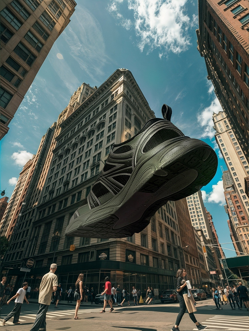 그가 생성한 이미지 속 거대한 에이스러너 운동화는 뉴욕의 장소 곳곳을 연상시키는 랜드마크 옆에 나타나 사람들을 놀라게 한다. 에이스러너는 합성가죽의 어퍼와 폴리에스터의 안감으로 만들어져 편안함과 견고함을 동시에 제공하는 운동화로, EVA와 배합고무의 창은 구름 위를 걷는 듯한 착용감을 선사한다.