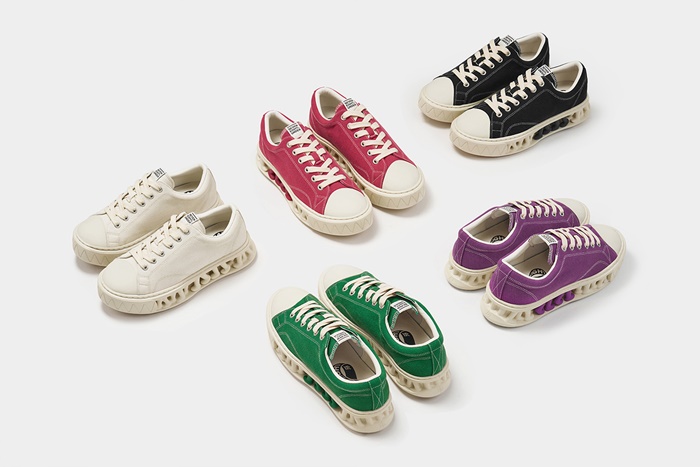 이번 빈티지 컬렉션에서는 세븐에잇언더의 시그니처 미드솔과 바이오 워싱 기법으로 제작된 일본산 캔버스 소재가 결합됐다. 바이오 워싱은 미생물을 이용하여 고온에서 원단을 삶는 기법으로 부드러운 빈티지 색감을 구현해낸다. ‘딥 퍼플’, ‘더스티 레드’, ‘모스 그린’, ‘오프 화이트’, ‘애쉬 블랙’, 총 다섯 가지 컬러웨이로 발매되며 신을수록 자연스럽게 에이징된다.