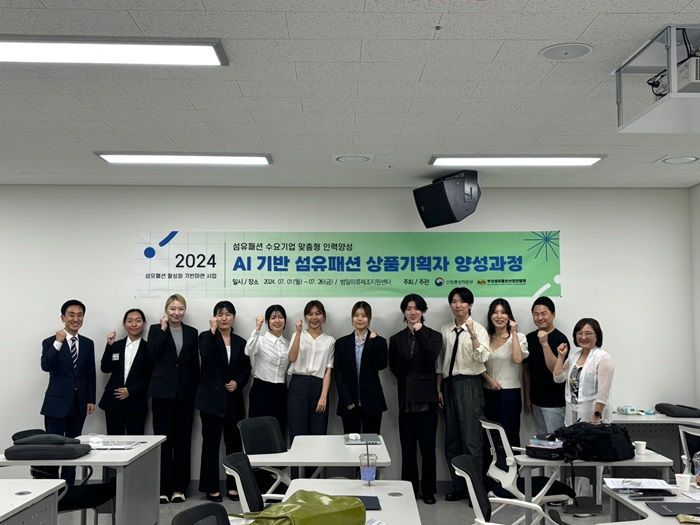 ‘AI 기반 섬유 패션 상품기획자 양성 과정’은 섬유패션산업의 혁신을 주도할 인재를 양성하기 위해 특별히 설계된 프로그램으로, 만 34세 미만 청년 미취업자를 대상으로 해 4주간의 전문 이론 및 실습 교육을 통해 최신 AI 기술을 활용한 상품기획, 디지털 마케팅, 데이터 분석, 트렌드 예측 등의 실무 역량을 강화하는 교육을 제공했다.