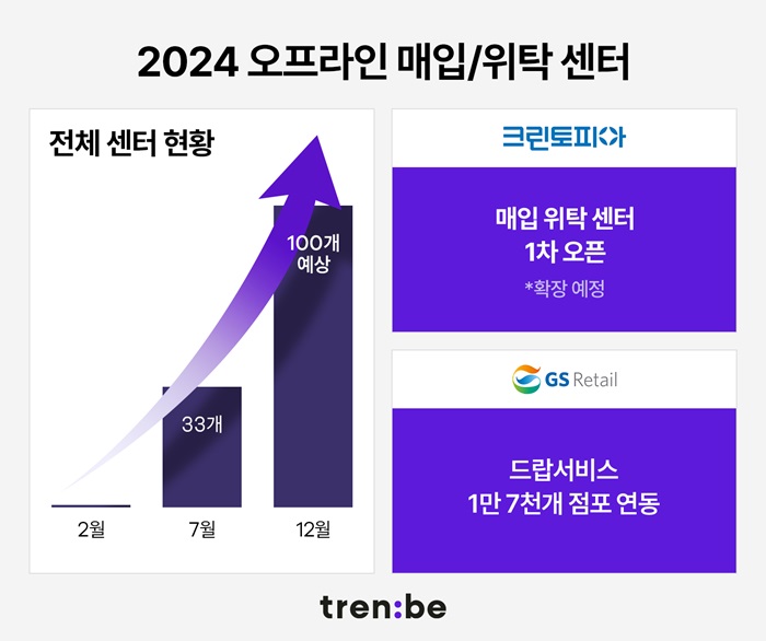 트렌비는 올해 2월 오프라인 중고매입위탁센터를 테스트 오픈했으며, 3월부터 본격적인 확장에 나서 3개월 만에 31개까지 확장했다. 특히, 6월에는 세탁 전문 기업 크린토피아와 오프라인 협업을 시작, 크린토피아 일부 매장에서 트렌비에 중고 상품을 판매할 수 있도록 했다.