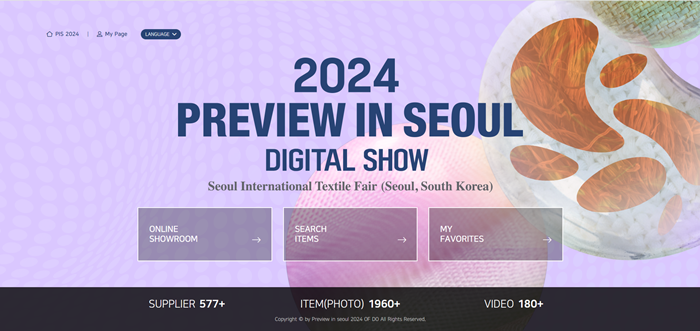 한국섬유산업연합회(회장 최병오, 이하 섬산련)는 오는 8월 21일부터 23일까지 코엑스 A, B홀에서 개최하는 ‘프리뷰 인 서울 2024(PIS 2024)’를 앞두고 ‘PIS 디지털 쇼’를 오픈했다.