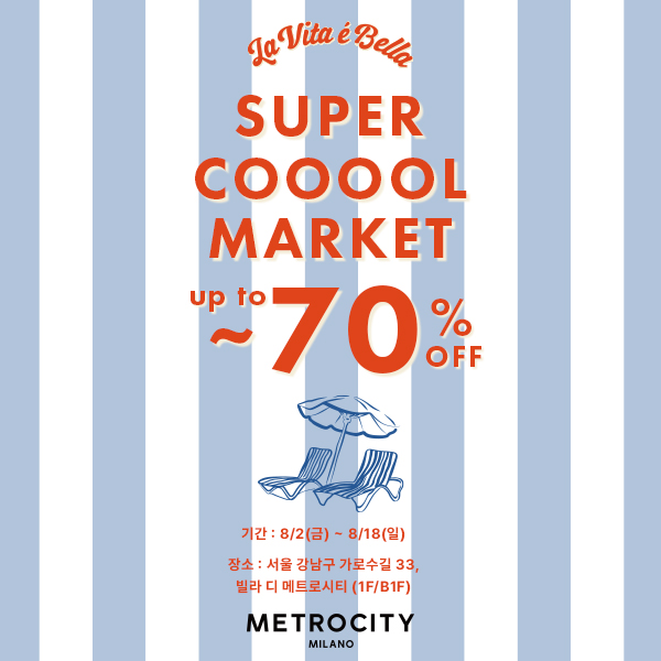 엠티콜렉션(대표 양지해)이 전개하는 이탈리아 네오 클래식 브랜드 ‘메트로시티(METROCITY)’가 서울 강남구 신사동에 위치한 플래그쉽 스토어 ‘빌라 디 메트로시티(Villa di METROCITY)’에서 여름맞이 ‘슈퍼 쿨 마켓(SUPER COOOL MARKET)’을 개최한다.