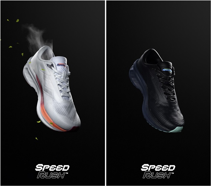 ‘스피드 러시’는 쿠셔닝, 경량성, 통기성에 초점을 맞춰 더운 여름 날씨 로드 러닝에 최적화된 러닝화다. 발포 기술을 활용한 신규 개발 소재 슈퍼폼(Super Foam)의 미드솔(중창)로 도톰한 두께감과 탁월한 쿠셔닝을 느낄 수 있다.