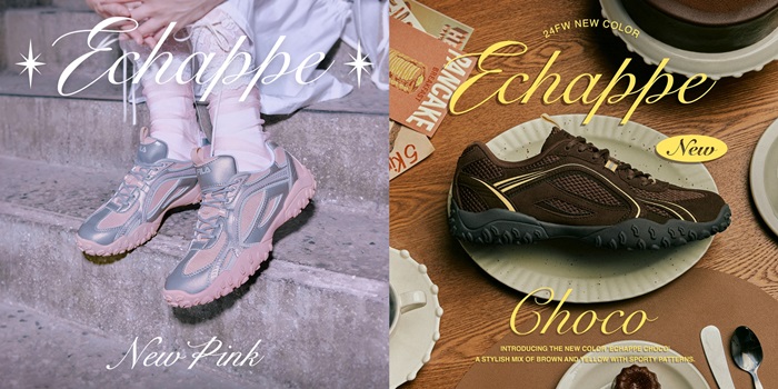 이어 오는 9월 9일경에는 에샤페 '초코’를 출시할 예정이다. 가을을 상징하는 브라운 컬러를 소재에 따라 변주해 보다 따뜻하고 특별한 느낌을 자아낸다. 부드러운 스웨이드 소재의 갑피에는 그윽한 초코 컬러를, 전면에는 맑은 브라운 컬러를 메시 소재로 적용해 따뜻한 무드를 세련되게 표현하는 동시에 통풍 기능을 더했다. 스포티 룩은 물론 트렌치 코트 등 가을 시즌 일상룩으로 다양하게 연출 가능하다.