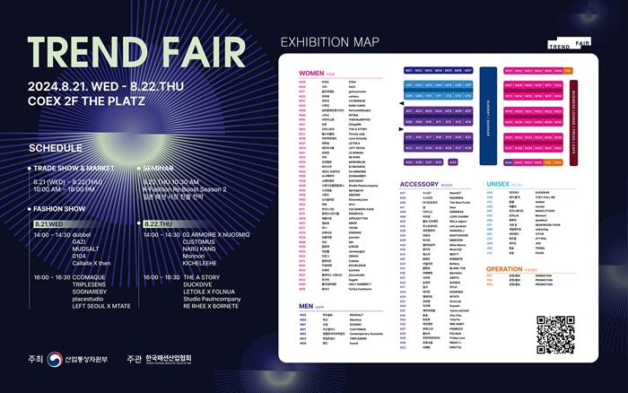 한국패션산업협회(회장 성래은, 이하 협회)가 산업통상자원부(장관 안덕근)의 지원으로 오는 8월 21일과 22일 양일간 코엑스 2층 더 플라츠 전시관에서 글로벌브랜드육성사업 일환으로 ‘2024 트렌드페어’를 개최한다.