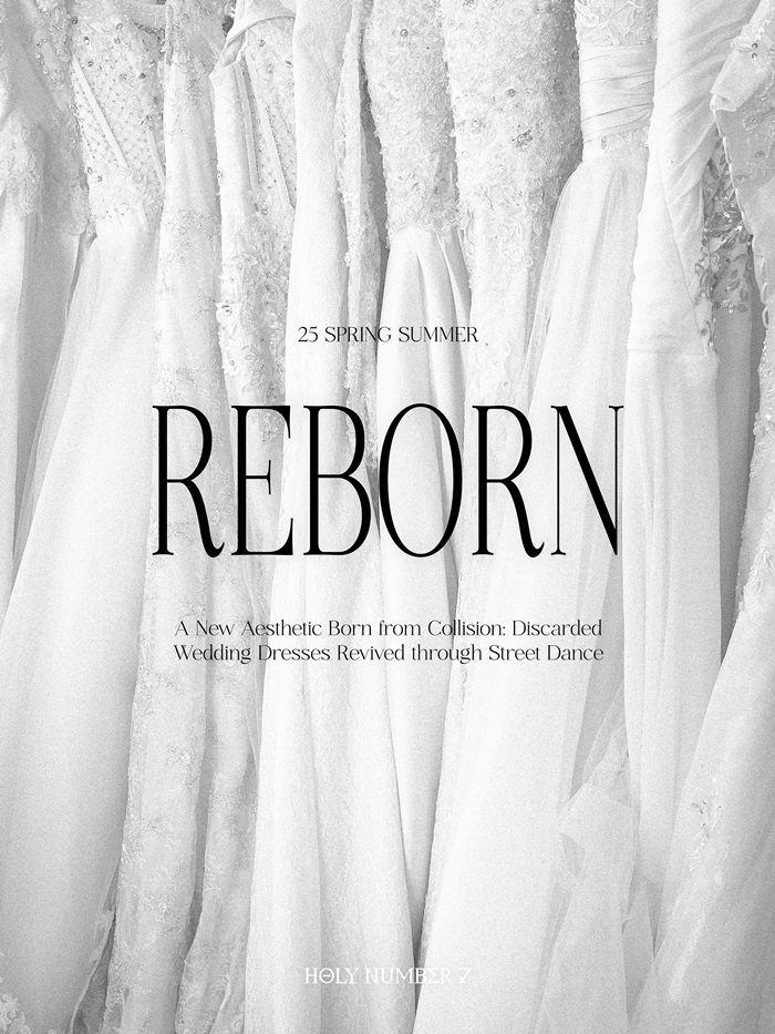 일년간 버려지는 웨딩드레스는 약 170만 벌, 한 벌의 웨딩드레스는 평균 4~6회 정도 입고 버려진다. 제로 웨이스트를 지향하는 홀리넘버세븐은 폐 웨딩드레스를 업사이클링 해 지속가능한 패션을 실천하고 있다. 스트릿 컬처를 기반으로 댄서 웨어를 전개하고 있는 홀리넘버세븐은 정적인 웨딩드레스와 반대되는 역동적인 무대를 위해 감각적인 디자인을 담아냈다.
