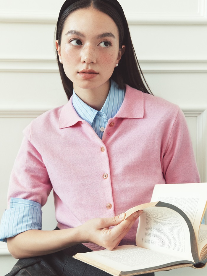 스트라이프 셔츠는 루즈핏으로, 플리츠 스커트는 무릎 위 기장으로 디자인해 젊은 감성을 강조했다. 클래식한 인디고 컬러의 데님 팬츠는 발목 기장의 실루엣을 적용했고, 핸드메이드 코트는 무릎 위 기장과 넓은 칼라(목깃) 디테일로 귀여움을 한 스푼 더했다.