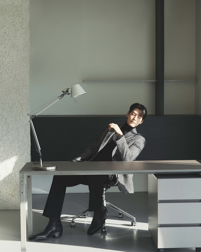 화보 속 김우빈은 생각에 잠긴 표정과 제스처로 독보적인 아우라를 뽐내며 완성도 높은 비주얼을 만들어냈다. 김우빈이 착용한 하운드투스 체크 패턴의 재킷은 타이트 하지 않은 스탠다드 핏으로 제작되어 편안하면서도 트렌디하게 착용하기 좋다. 또한 다양한 이너와 팬츠를 믹스매치 한다면 포멀과 캐주얼 무드를 다양하게 넘나드는 스타일 연출이 가능한 아이템이다.
