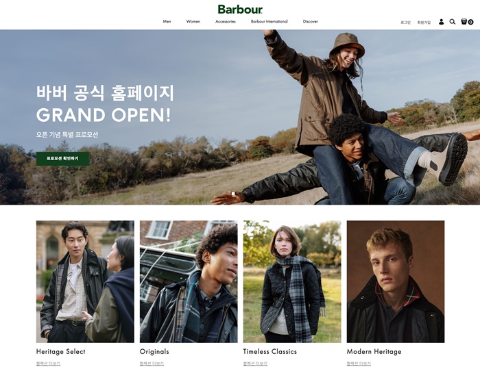 생활문화기업 LF가 수입판매하는 영국 헤리티지 브랜드 ‘바버(Barbour)’가 고객들과의 접점 확대를 위해 한국 공식 온라인 스토어를 새롭게 오픈했다.
