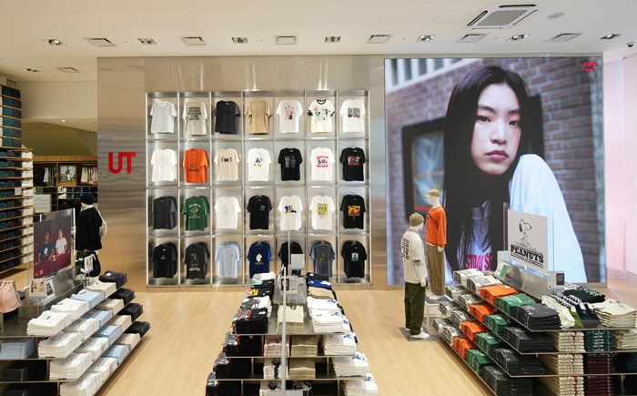 ‘유니클로’의 그래픽 티셔츠 라인업이 전시된 ‘UT 존’