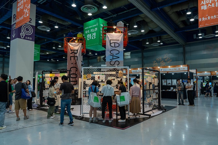 또한 이날 코오롱FnC는 ‘제 1회 대한민국 사회적 가치 페스타’와 연계해 패션이 순환하는 여정을 보여주는 부스 전시 및 세션도 진행했다. 전시 부스는 ‘순환 패션, 순환 여정’을 주제로 코오롱FnC가 전개하는 지속가능한 캐시미어 브랜드 르캐시미어(LE CASHMERE)와 업사이클링 기반 패션 브랜드 래코드(RE;CODE)가 옷의 채취, 분해, 조합하고 재탄생하는 모든 과정을 보여줌으로써 의류 재고를 다시 선순환하는 가치를 경험할 수 있도록 기획했다. 또한 현장을 찾은 관람객들을 위해 ‘래코드 리테이블’ 프로그램을 운영해 업사이클 부자재로 조합해 나만의 키링을 만드는 이벤트도 진행해 눈길을 끌었다.
