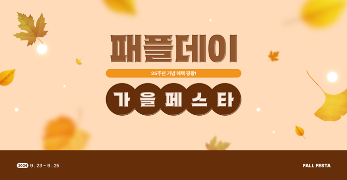 오는 23일부터 25일까지 단 3일간 진행되는 이번 ‘패플데이 가을페스타’는 장바구니 할인 쿠폰 증정, 랜덤 축하금 받기 룰렛 이벤트, 스타벅스 기프티콘 랜덤 증정 이벤트 등 다양한 혜택이 마련되어 있다.