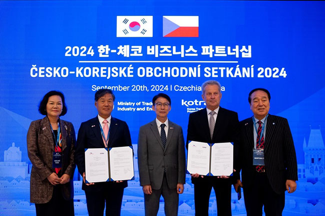 이날 진행된 한국수입협회와 체코무역진흥청과의 업무협약식에는 김 회장과 돌레잘 청장을 비롯해 이지형 KOTRA 경제통상협력본부장, 신경택 한국수입협회 부회장(남평아이티 대표), 윤영미 한국수입협회 부회장(하이랜드푸드 대표) 등 주요 인사가 참석한 가운데 열렸다.