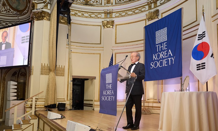 휠라홀딩스 윤윤수 회장이 밴 플리트상 수상 소감을 밝히고 있다.