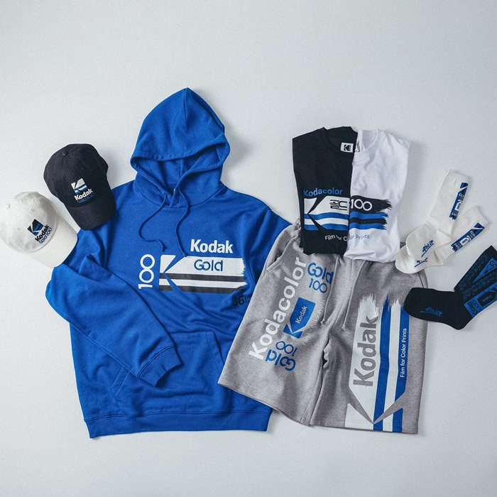 골드 100 캡슐 컬렉션은 현재까지도 아날로그 촬영 애호가와 매니아들에게 꾸준히 사랑받고 있는 ‘코닥 Gold 100’ 필름에서 영감을 받은 디자인이 특징이다. 과거 영광의 순간을 현대적으로 복각한 컨셉으로 필름 특유의 빈티지 감성과 트렌디함이 어우러진 실용성을 갖췄다. 컬렉션은 반팔 티셔츠, 맨투맨, 후드, 조거 팬츠 등 의류부터 모자, 양말 등 용품까지 총 8종으로 구성됐다.