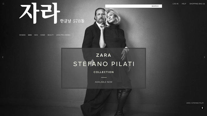 인디텍스 그룹의 글로벌 패션 브랜드 ‘자라(ZARA)’가 한글날을 맞아 공식 온라인 스토어에 ‘자라’ 한글 로고를 사용한다. 자라 온라인 스토어에 한글 로고를 적용한 것은 2014년 9월 론칭 이후 처음이다.
