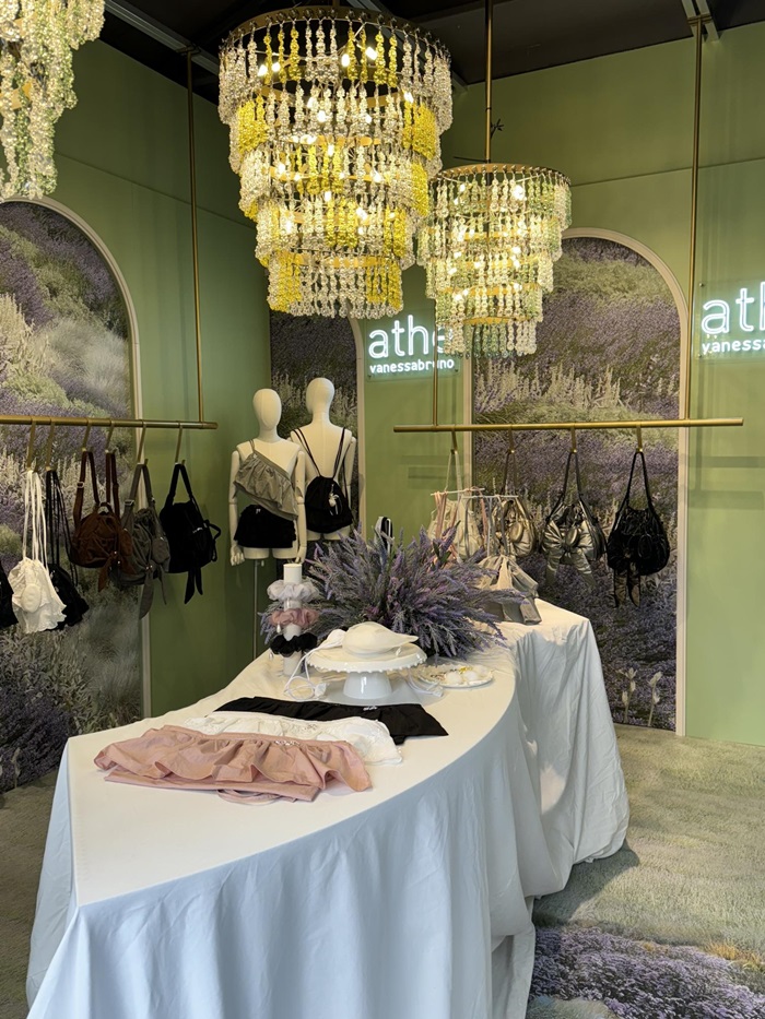 팝업 공간의 컨셉은 ‘가을의 프릴 파티’로, 로맨틱한 디자인과 소재를 적용한 제품들을 직접 착용하고 즐길 수 있는 최적의 공간으로 구성됐다. 채도가 낮은 색감과 갈대 등 가을을 연상시키는 오브제를 활용하고, 아떼 바네사브루노의 크리스탈 키링으로 완성된 화려한 샹들리에를 설치해 몽환적인 느낌을 극대화했다. 인증샷을 남길 수 있는 포토존도 구성돼 뜨거운 호응을 이끌었다.