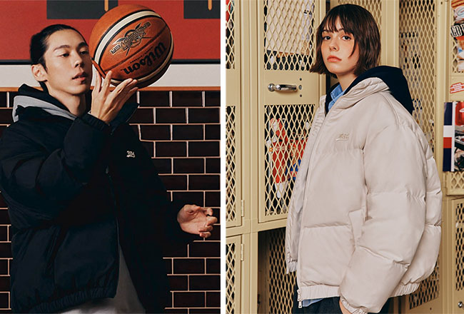 이번 겨울 컬렉션은 아트웍이 돋보이는 후드 셔츠에 매치할 수 있는 트렌디한 베이직 로도 오버사이즈 숏 덕다운 베스트와 가볍게 걸쳐 편안한 무드를 낼 수 있는 베이직 로고 오버사이즈 숏 덕다운 재킷이 주요 제품이다.