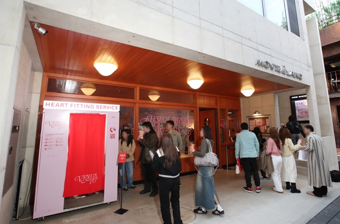 1층에서는 상영 영화를 테마로 나의 사랑 페르소나를 테스트해 사진으로 결과물을 확인할 수 있는 ‘하트 피팅 서비스 포토부스’를 운영한다. 이 외에도 무비랜드에서 디자인한 ‘비너스X무비랜드’ 한정판 파자마 등 다양한 기념품과 이번 팝업스토어만을 위해 준비한 달콤한 초코맛의 ‘비너스 러브 콤보’도 즐길 수 있다.