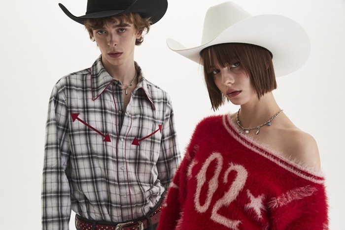 또한, 유니크한 조직감과 밑단의 프린지 디테일로 웨스턴 무드를 더한 여성용 ‘니트 베스트’와 별 모양의 스터드 포인트가 매력적인 ‘슬리브리스 미니 드레스’, 카우보이 절개 라인과 화살표 주머니로 개성 있게 연출한 ‘웨스턴 크롭 재킷’과 ‘유니섹스 디스트레스드 카라 스웨터’ 등도 함께 만날 수 있다. 여기에 웨스턴 룩을 더욱 돋보이게 해줄 ‘써지컬 목걸이’와 ‘반다나 브레이드 타이’ 등의 액세서리도 함께 만날 수 있다.