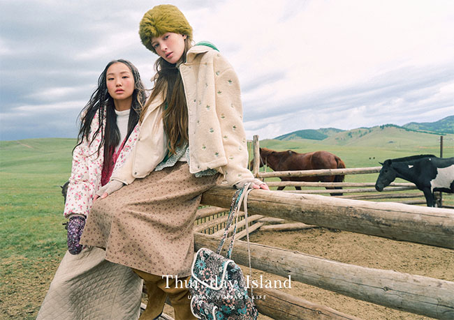 ‘써스데이 아일랜드’의 24 WINTER 시즌은 ‘몽골’에서 ‘디지털 디톡스(Digital Detox)’ 테마로 드넓은 초원 속에서 귀여운 동물들은 물론, 몽골의 평야를 달리는 ‘푸르공’이라고 불리는 자동차와 함께 ‘여행’ 테마를 중점으로 브랜드의 독보적인 오리진을 살리며 힐링 가득한 감성의 캠페인을 선보인다.